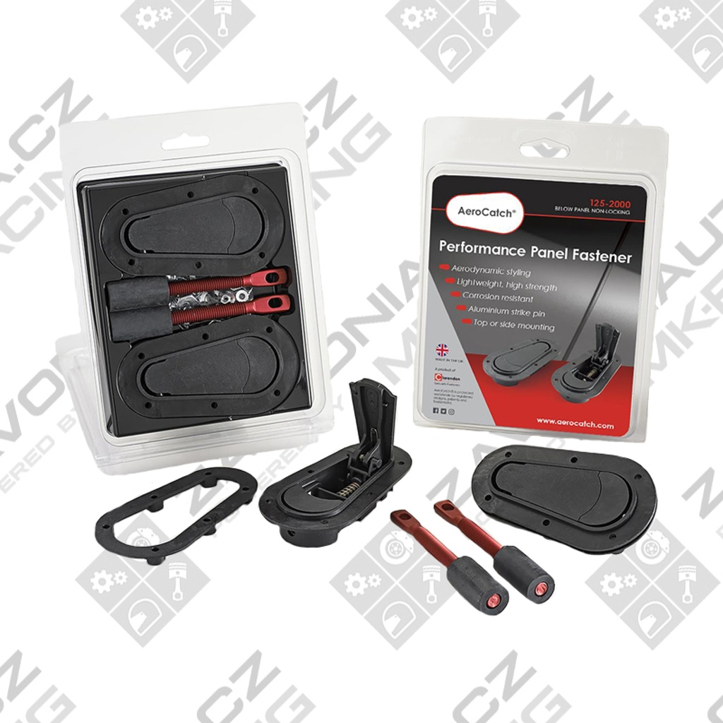 Zámky kapoty AeroCatch nabízí moderní aerodynamický design v kombinaci s nízkou hmotností, funkčností a stabilní, pevnou konstrukcí, která je značně využívána v celé řadě závodních aplikací. Díky promyšlenému designu je možné instalovat zámky jak pro vertikální, tak pro boční otevření. Zámky kapoty AeroCatch dokonale splynou s kapotou, netvoří žádnou hranu a k jejich otevření stačí stlačit přední část zámku, který automaticky povyskočí a jednoduchým potažením se uvolní.