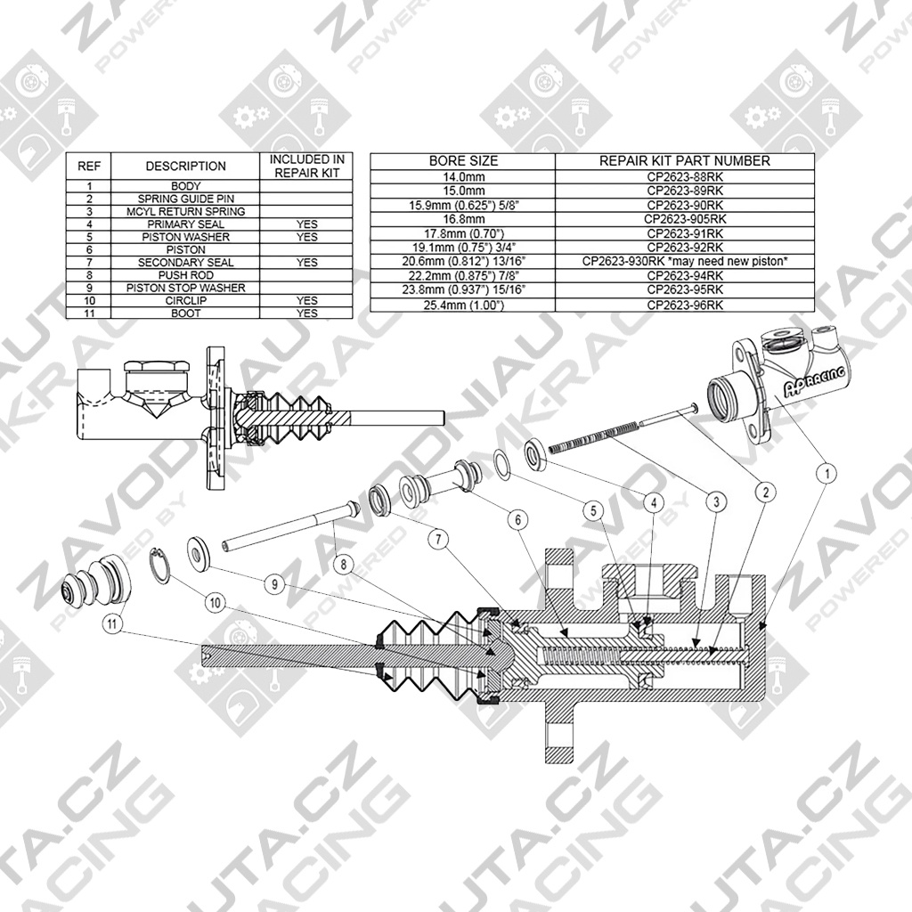 Opravná sada brzdového válce AP Racing. Určeno pro průměr válce 1" (25,4mm).