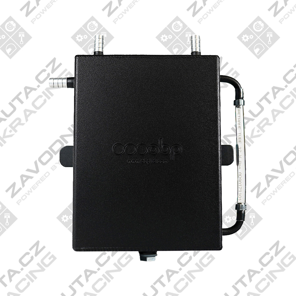 Univerzální, hliníkový olejový catch tank OBP bez přepážek slouží k separaci olejových výparů z víka ventilů a klikové skříně motoru. Zachycuje a neznečišťuje tak škrticí klapku, intercooler (u přeplňovaných motorů) a další díly v sacím traktu motoru. Jednoduché vyprázdnění za pomocí výpustného šroubu ve spodní části nádoby. Ukazatel stavu objemu oleje.
