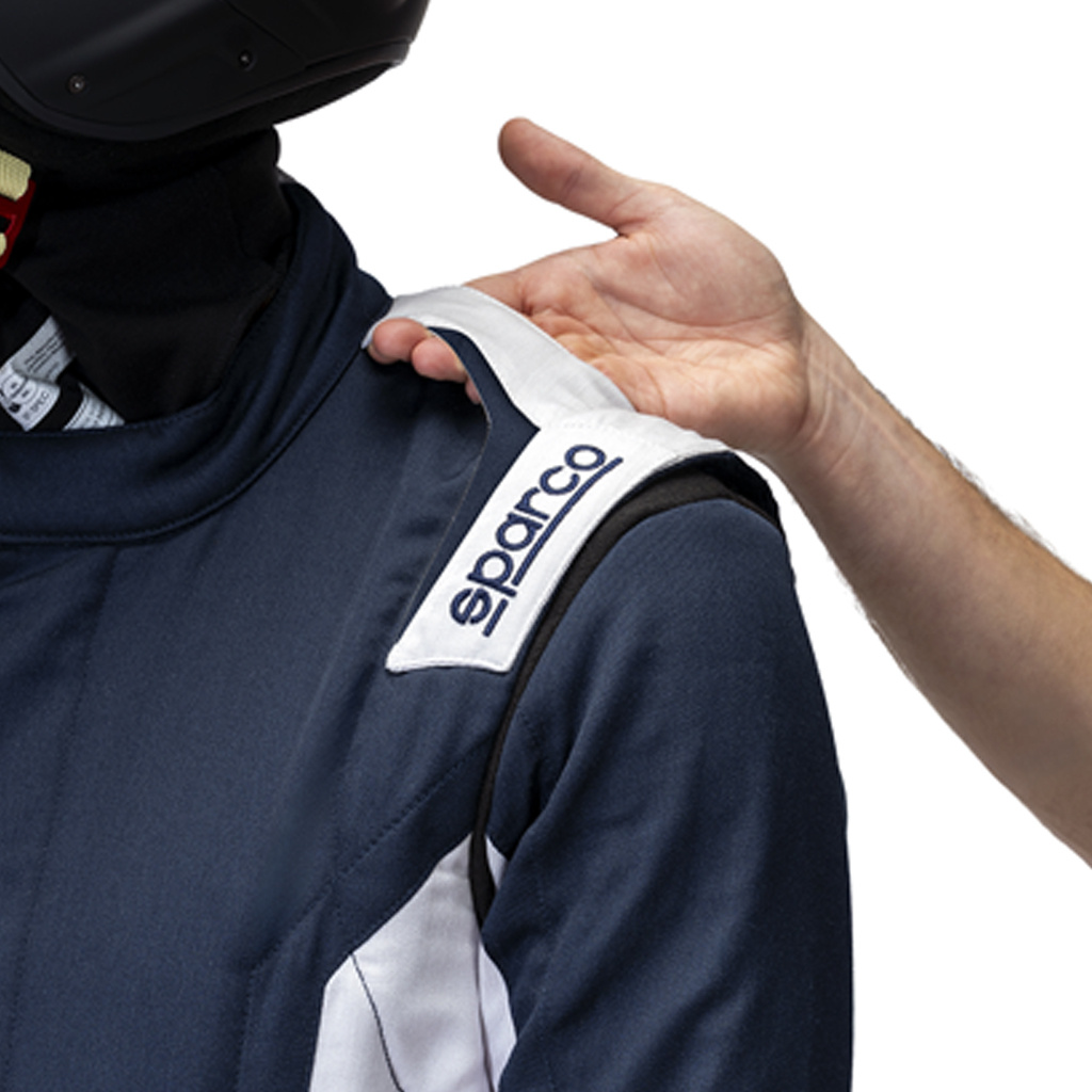 Sparco Sprint Advanced je praktická dvouvrstvá závodní kombinéza splňující normu FIA 8856‑2018. Nabízí částečně volné rukávy, strečový bederní panel, diagonální prošívání a výběr symetrických nebo asymetrických střihů. Měkká, pololesklá tkanina zlepšuje prodyšnost a pocit při nošení.
