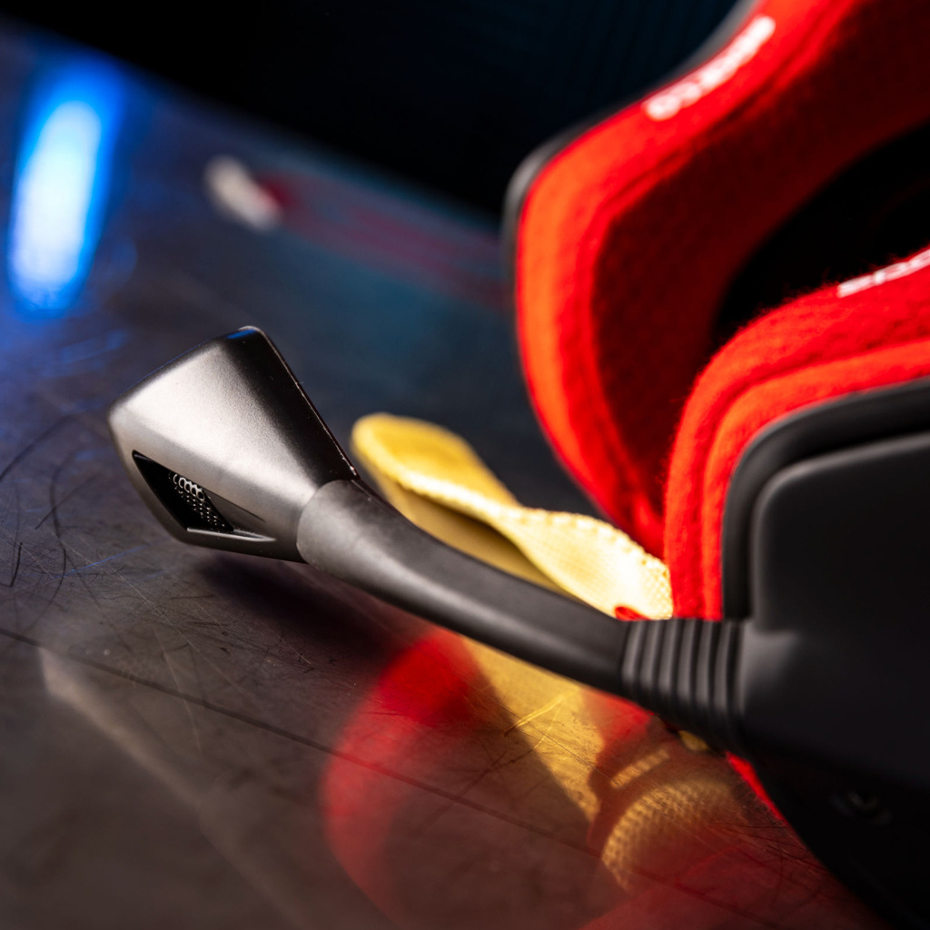• Integrovaný kryt mikrofonu a polotuhé rameno se sníženým objemem pro snadné nastavení a maximální viditelnost.