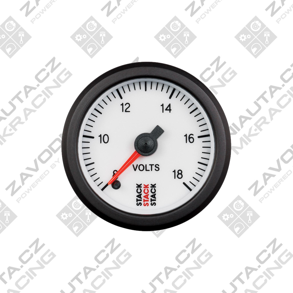Přídavný, elektronický podsvícený voltmetr Stack. Precizní budíky řady ST33 kombinují přesnost digitálního mikroprocesoru s vysoce přesným krokovým pohybem ručičky a tím nabízejí novou úroveň přesnosti. Kombinují odolnost a čitelnost mechanických budíků a snadnou instalaci budíků elektrických. Bílé LED podsvícení a osvětlená ručička zaručují perfektní čitelnost ve dne i v noci.