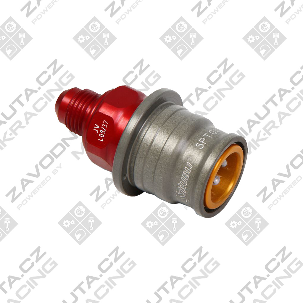 Odběrný ventil Stäubli SPT05 sloužící ke kontrolnímu odběru paliva, případně k vypouštění paliva z nádrže. Ventil je vhodný pro palivo obsahujíc perfluoroelastomer.