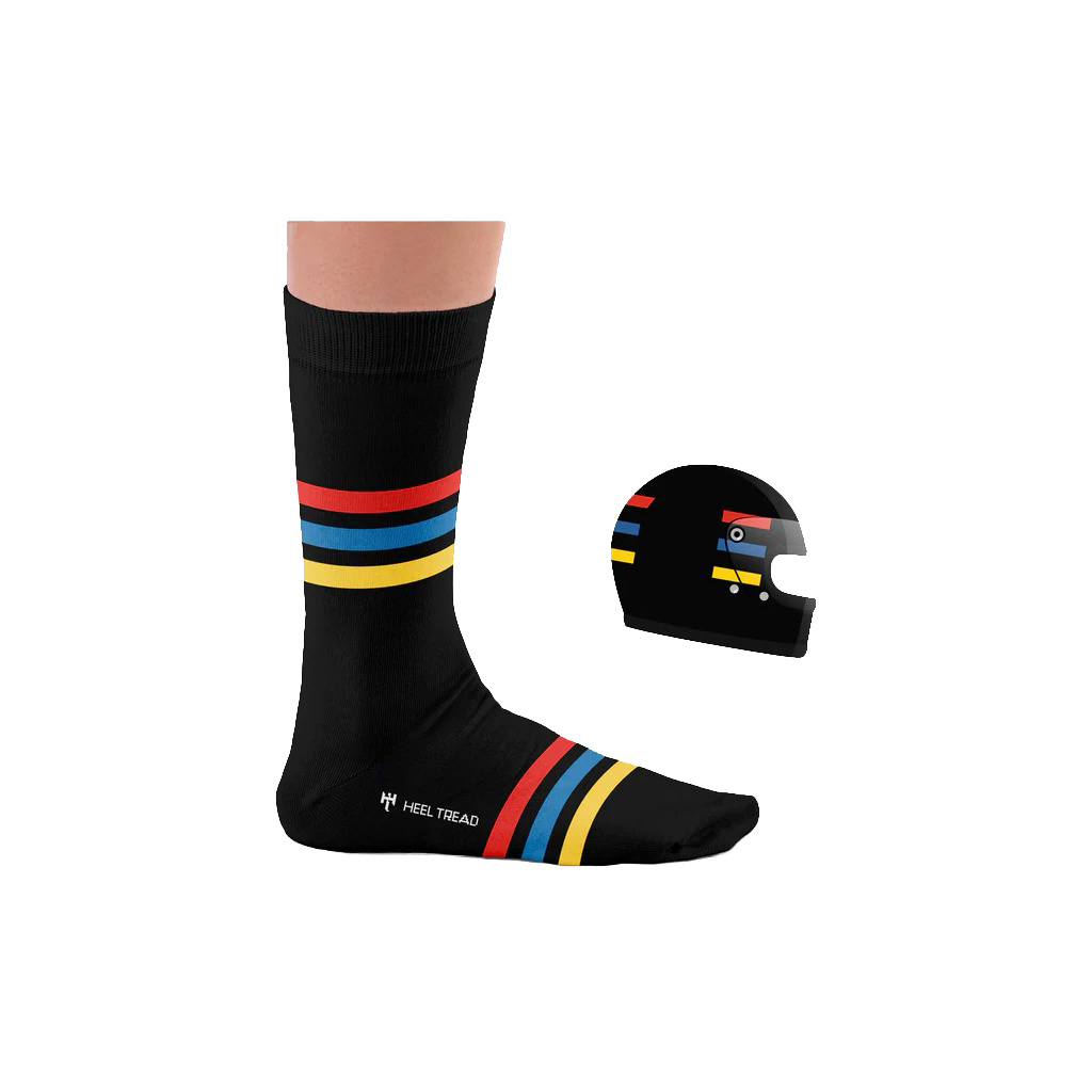 Heel Tread ponožky Helmet Pack je stylová sada čtyř párů ponožek inspirovaných legendárními jezdci F1. Ideální jako dárek pro všechny fanoušky Formule 1.
