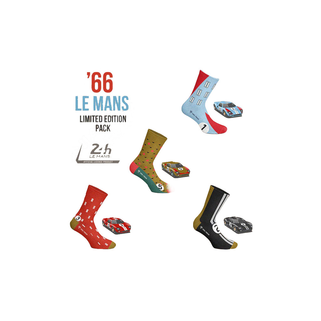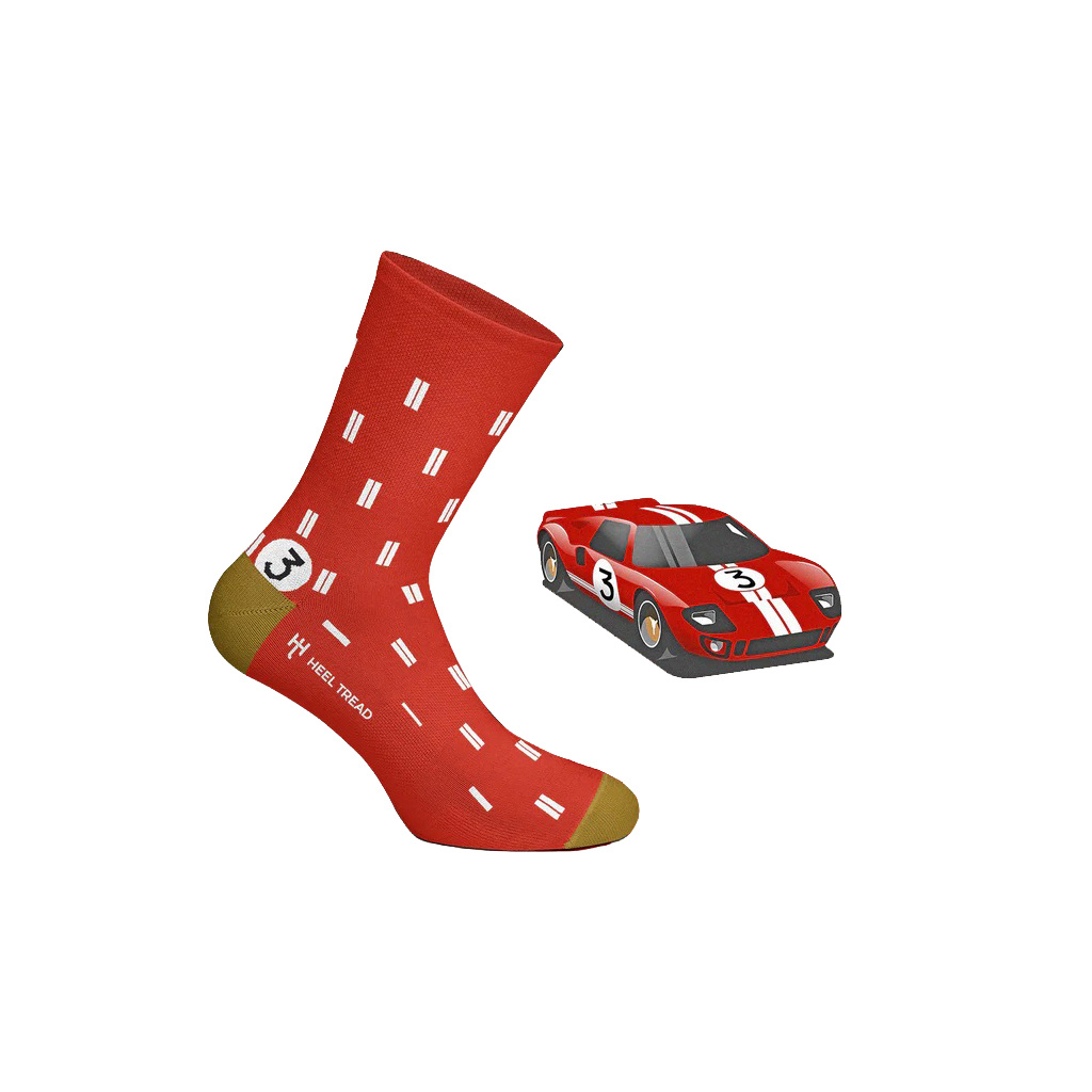 Dárkový box obsahující 4 páry ponožek Heel Tread pro všechny fanoušky motorsportu. Tato speciální edice je inspirována barvami vozu Ford GT40 Le Mans.