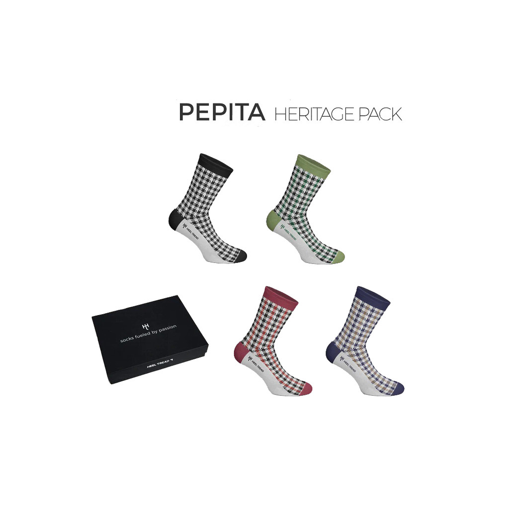 Heel Tread ponožky Porsche 356/911 Pepita Pack je stylová sada čtyř párů ponožek inspirovaných vzory čalouněním sedadel vozů Porsche. Ideální jako dárek pro všechny fanoušky motorsportu.